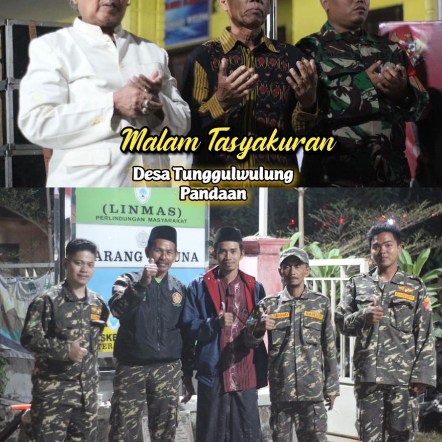 tunggulwulung-pandaan.desa.id- Kamis, 17 Agustus 2023 suasana di Balai Desa Tunggulwulung pada malam hari sangat ramai. Pada malam ini berbeda dengan malam-malam sebelumnya karena pada malam ini pemerintah desa Tunggulwulung menggelar Doa bersama dengan Ulama' dan Masyarakat desa Tunggulwulung. Acara ini sebagai wujud rasa syukur dan terimakasih atas jasa para pahlawan dalam kemerdekaan RI. Bertepatan pada malam ini Dirgahayu Kemerdekaan RI ke-78 dengan tema Terus Melaku Menuju Indonesia Maju. Sebanyak ratusan orang hadir pada acara ini mulai jajaran Pemerintahan desa Tunggulwulung wulung dari Kepala Desa, Jajaran perangkat Desa, RT/RW, BPD, Babinsa, Ibu Penggerak PKK, Mantan Perangkat desa Tunggulwulung yang purna tugas, Pengurus Ranting NU Tunggulwulung dan Banomnya Fatayat, Muslimat, Anshor, Banser, selain itu juga Karang taruna dan ikatan Pemuda-Pemuda Dusun se Tunggulwulung.